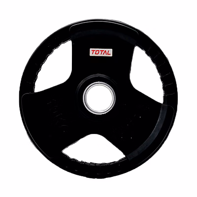 Enhance your strength training with the TOTAL Olympic Rubber-Coated Weight Plates Pack of 2. These durable plates offer a floor-protecting design and ergonomic grips for safe and versatile workouts.
