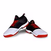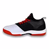 Introducing red and white tennis shoes with a lace-up closure and a medium shoe width. The shoes feature a spacer air mesh and TPU film with a knitted collar rib upper, designed for support and stretch to ensure a custom fit. The molded removable hexagonal shape EVA (SportHo Foot Comfort) sock liner provides comfort, along with a soft cushion NR EVA inner insole and a duo foam soft compressed midsole. The non-marking multi-directional structure offers stability and agility on the court. Step onto the court in style and comfort with these vibrant red and white tennis shoes.